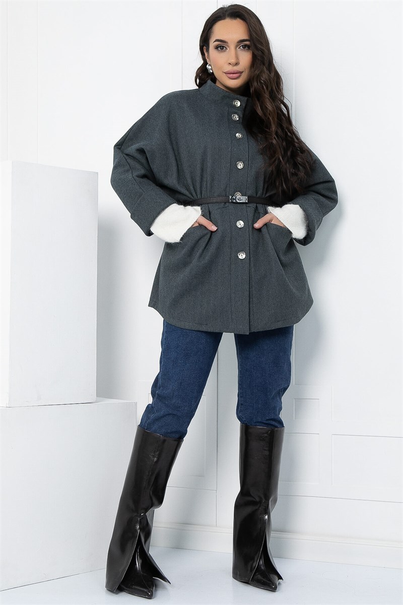 Пальто-жакет свободного кроя — это стильный и универсальный элемент гардероба, который поможет создать множество образов. Воротник-стойка плавно переходит в планку на пуговицах, что придаёт изделию элегантный и современный вид. Цельнокроеные рукава и манжеты, которые можно отгибать, позволяют экспериментировать с образом. Удобные карманы добавляют функциональности, делая пальто практичным выбором для повседневной носки. Станет незаменимым элементом вашего гардероба, сочетая в себе комфорт и стиль.