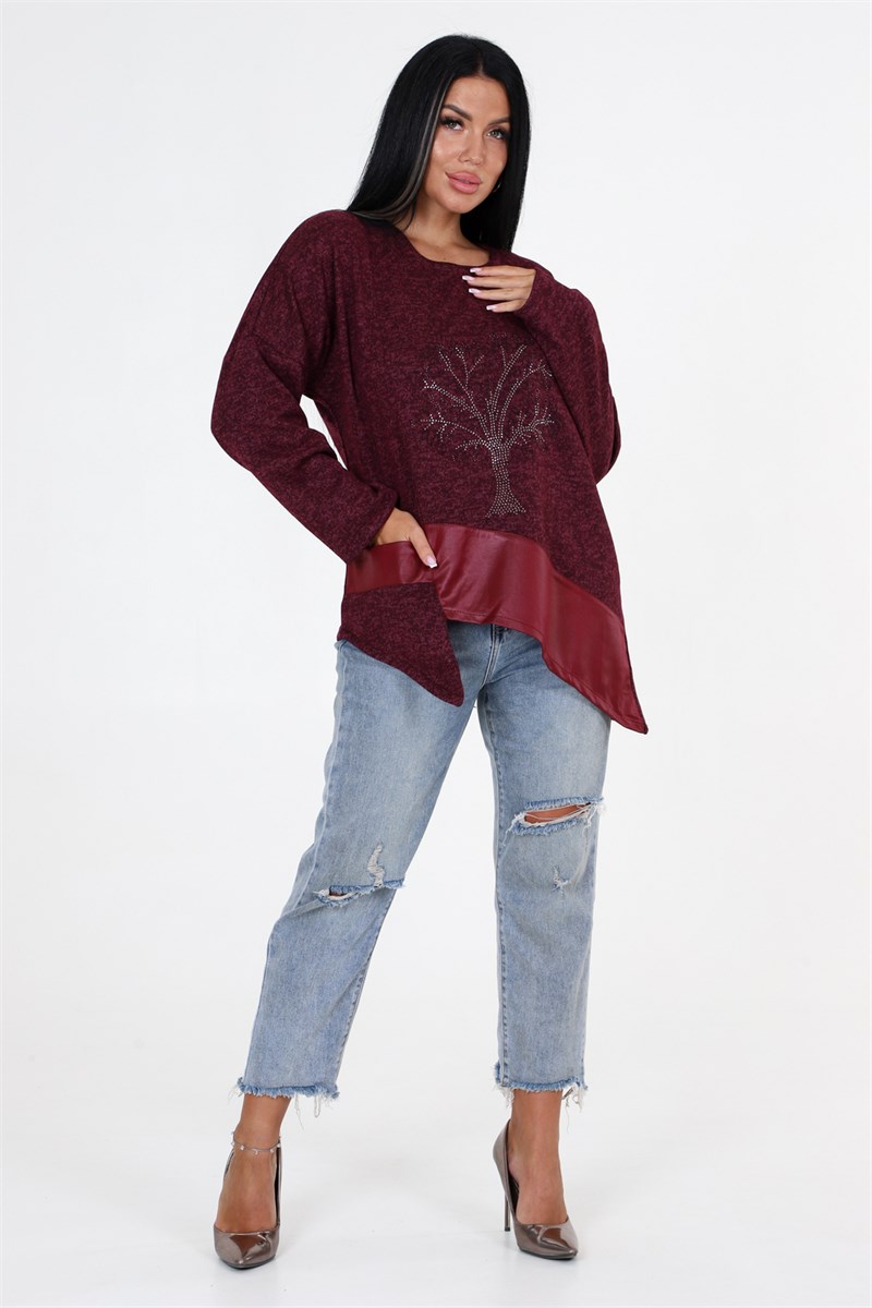 Выбирайте женскую тунику свободного кроя с впечатляющими деталями! Наша уникальная туника имеет прекрасно украшенную полочку со стразами и вставками из стретч-кожи, которые придают ей особый шарм. Низ изделия имеет фигурную отделку, добавляющую дополнительный элемент стиля. Спущенные длинные рукава прекрасно дополняют общий образ.