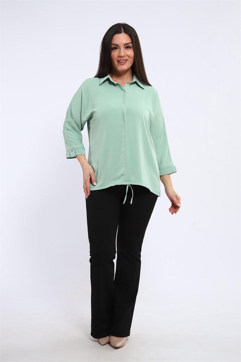 Рубашечный воротник привносит нотку классики и делового шика, делая тунику уместной как в офисе, так и на неформальной встрече. Свободный крой обеспечивает полную свободу движений, а регулируемый шнурок по низу позволяет создать желаемый силуэт: от слегка приталенного до более расслабленного.