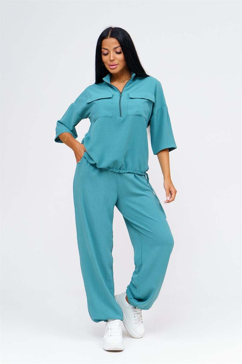 Встречайте безупречное сочетание элегантности и комфорта в новом костюме женском брючном. Стильный комплект идеально подчёркивает вашу индивидуальность и подходит для разнообразных случаев, будь то работа, деловая встреча или романтический вечер. Исполненный в чарующем бирюзовом цвете, он придаёт образу свежести и лёгкости, акцентируя внимание на вашем изысканном вкусе. Брючный костюм женский летний создан из мягкой, дышащей ткани, что обеспечивает комфорт даже в жаркую погоду. Превосходный крой и продуманные детали делают его идеальным выбором для тех, кто ценит качество и утончённый стиль. Дизайнеры предусмотрели все особенности конструктивного покроя, чтобы костюм женский классический садился по фигуре, подчёркивая её достоинства и грациозно скрывая недостатки. Брюки имеют удобную посадку и идеально сочетаются с блузками и топами, что позволяет вам легко создавать разнообразные образы на каждый день. Туника, входящая в комплект, обладает элегантным фасоном и дополнен изысканными деталями. Брючный костюм женский позволяет вам выглядеть эффектно и стильно, независимо от обстоятельств. Костюм женский больших размеров создан с учётом всех модных тенденций и актуальных требований к ношению: он легок и приятен к телу, не стесняет движений и при этом сохраняет форму в течение всего дня. Такого комплекта одежды женской летней трудно найти аналог, ведь он идеально подходит как для дневных офисных будней, так и для вечерних выходов.