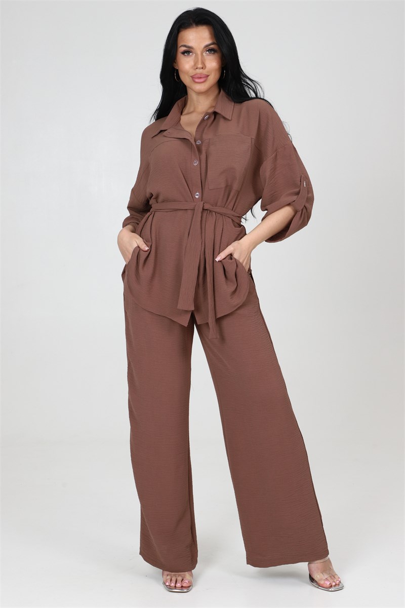 В комплекте с костюмом идет стильная рубашка на пуговицах с воротником. Этот элемент добавляет официальности и элегантности вашему образу. Вы сможете носить этот костюм как для работы, так и для особых случаев.