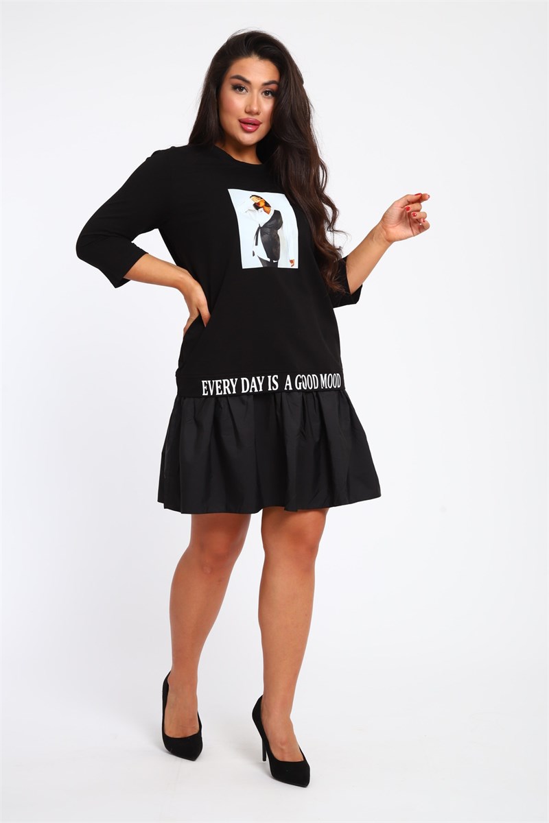 Это черное платье дарит вам комфорт и стиль, который вы заслуживаете. Построенное из качественных материалов, оно идеально сидит на фигуре и позволяет вам чувствовать себя уверенно и свободно. По всему низу платья идет элегантный волан, создающий гармоничный силуэт. Волан добавляет платью нежности и игривости, подчеркивая вашу женственность и создавая эффектную игру линий при каждом движении.