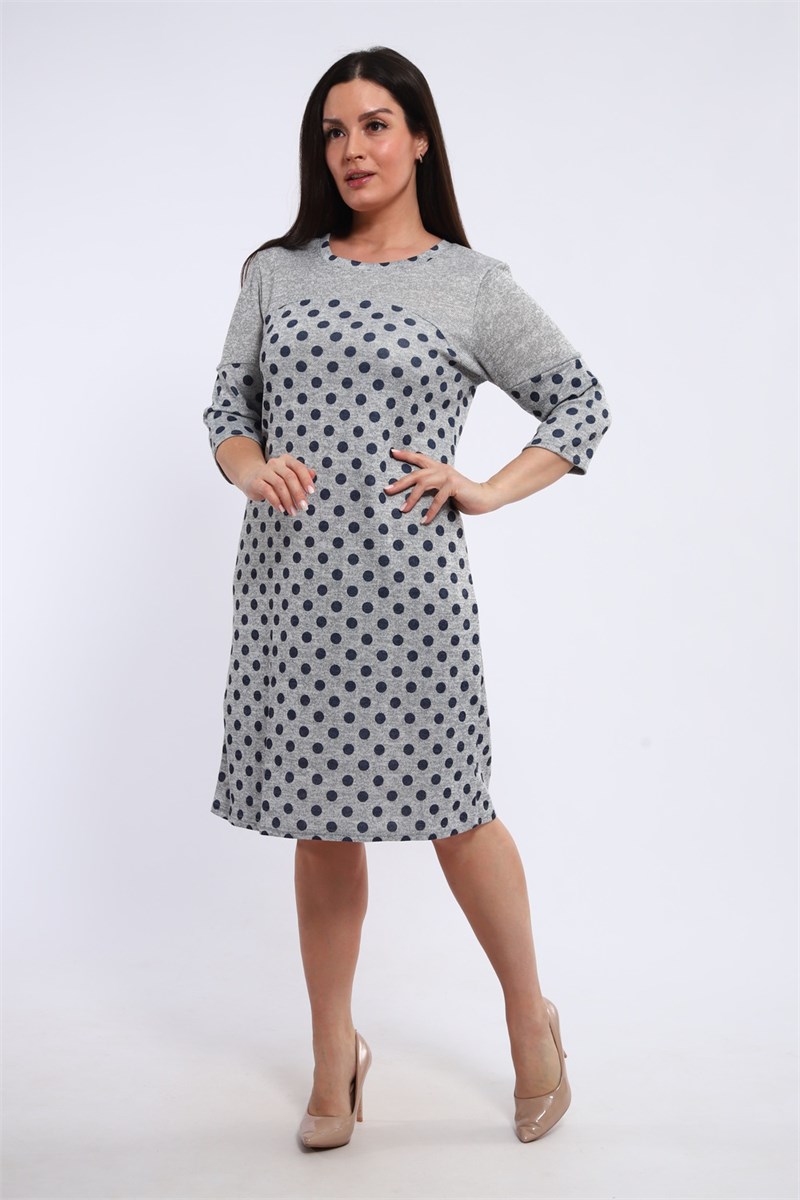 Универсальное сочетание тканей: Платье выполнено в модном сочетании гороха и однотона, что позволяет варьировать аксессуары и образы. Уникальный принт в горошек добавляет игривости и легкости, а однотонные элементы обеспечивают стильный контраст.