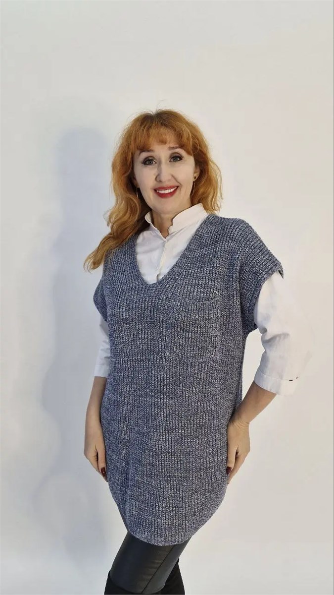 Женский жилет прямого силуэта с V-вырезом со шнуровкой на спине. Спущенная линия плеча. Карман на груди. Модель выполнена из высококачественной пряжи с составом 30% шерсть 70% ПАН переплетением, образующим "жемчужные" петли. Жилет будет кстати на любой случай жизни. На работу или на прогулку. Он согреет Вас теплом и укутает уютом!